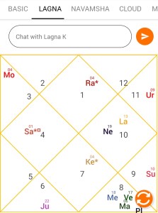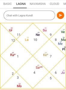 Now the Kaalpurush chart of any event is created by keeping Aries as the number one house as Aries represents the beginning of time being zodiac number 1. Accordingly, the chart on the right down below (henceforth called as Kaalpurush chart) has been created by rotating the birth chart on the left down below.